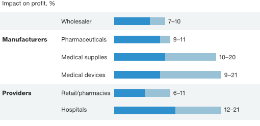 Industry research, together with our own experience serving clients, has revealed opportunities to boost profitability throughout the value chain. The improvement from better-performing supply chains would range from about 6 percent for retailers to 20 percent for hospitals and producers of devices and medical supplies (Exhibit 2).