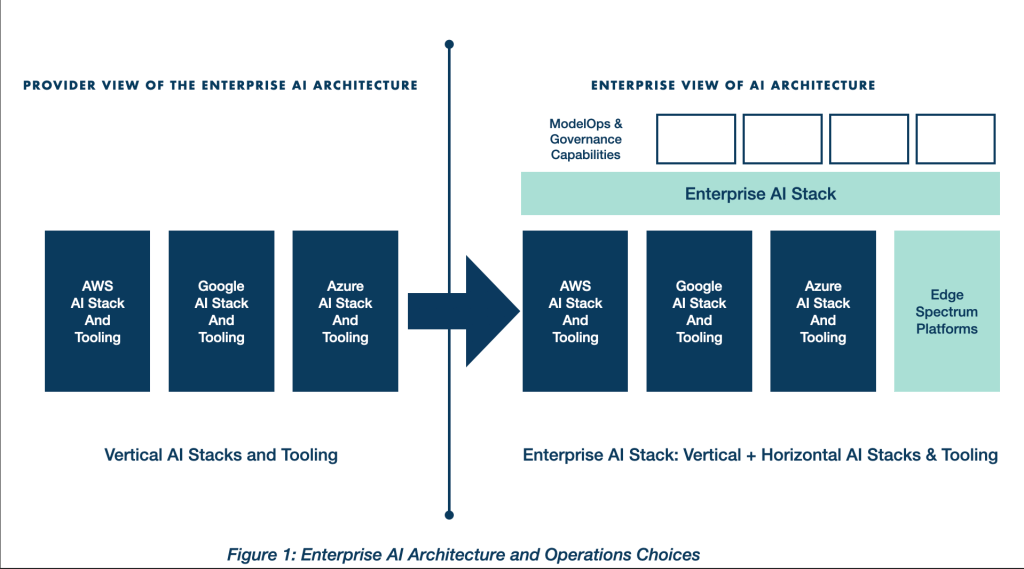 An enterprise AI operations management system should be the master control point and system of record, intelligence, and security for all AI solutions in a federated model (AI models and data catalogs). AWS, Azure, or Google can provide data, process, and tech platforms and services to be consumed by enterprises.
