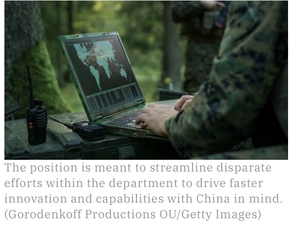 WASHINGTON — The U.S. Defense Department is creating a new position to oversee its digital and artificial intelligence activities, with the hope the office will be able to drive faster progress in those areas and meet threats posed by China, according to a senior defense official.