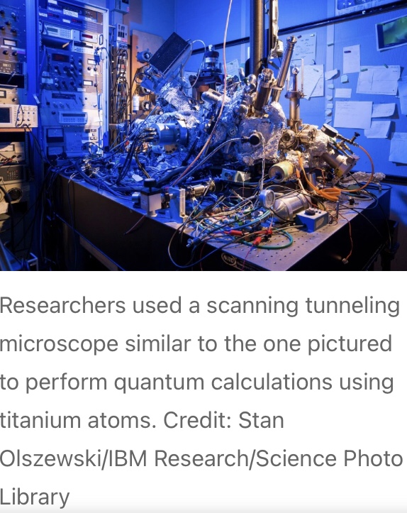 The technique, described on 5 October in Science1, controls titanium atoms by beaming microwave signals from the tip of a scanning tunnelling microscope (STM). It is unlikely to compete any time soon with the leading approaches to quantum computing, including those adopted by Google and IBM, as well as by many start-up companies. But the tactic could be used to study quantum properties in a variety of other chemical elements or even molecules, say the researchers who developed it.