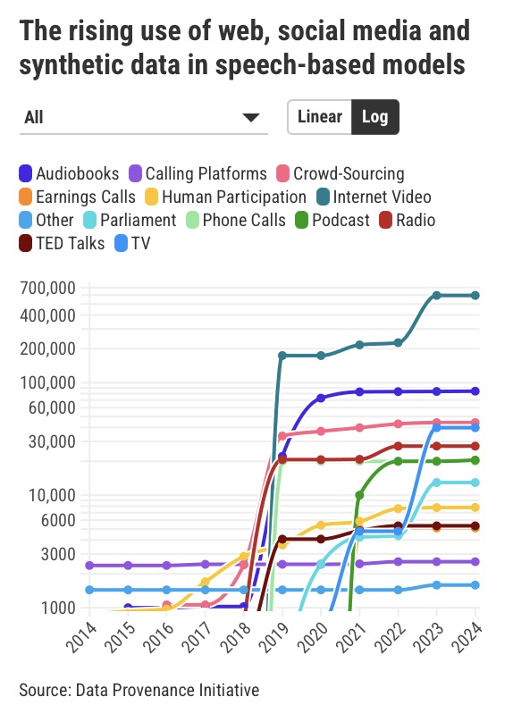 For video models, as you can see in this chart, over 70% of data for both speech and image data sets comes from one source.